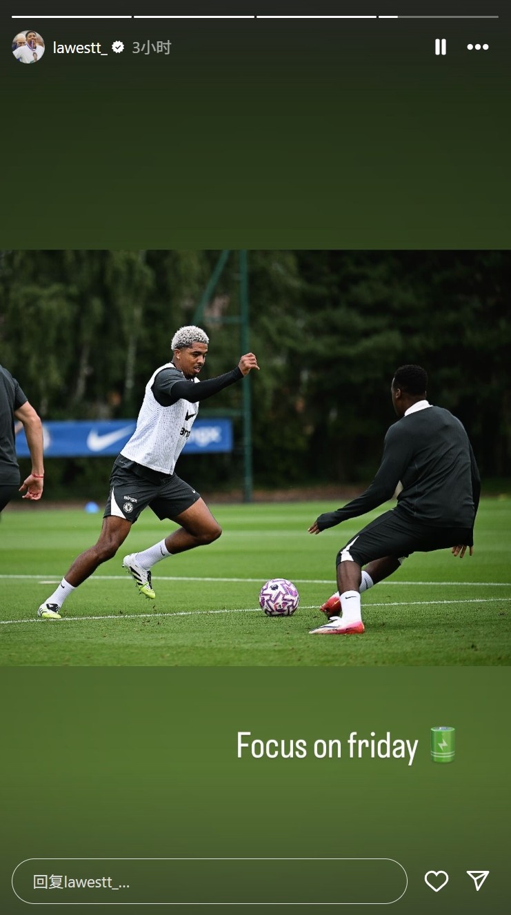 8月21日,切尔西后卫韦斯利-福法纳通过个人社交媒体发布了最新训练动态,配文写道:"全力备战周五赛事🔋",同时晒出了训练现场照片。